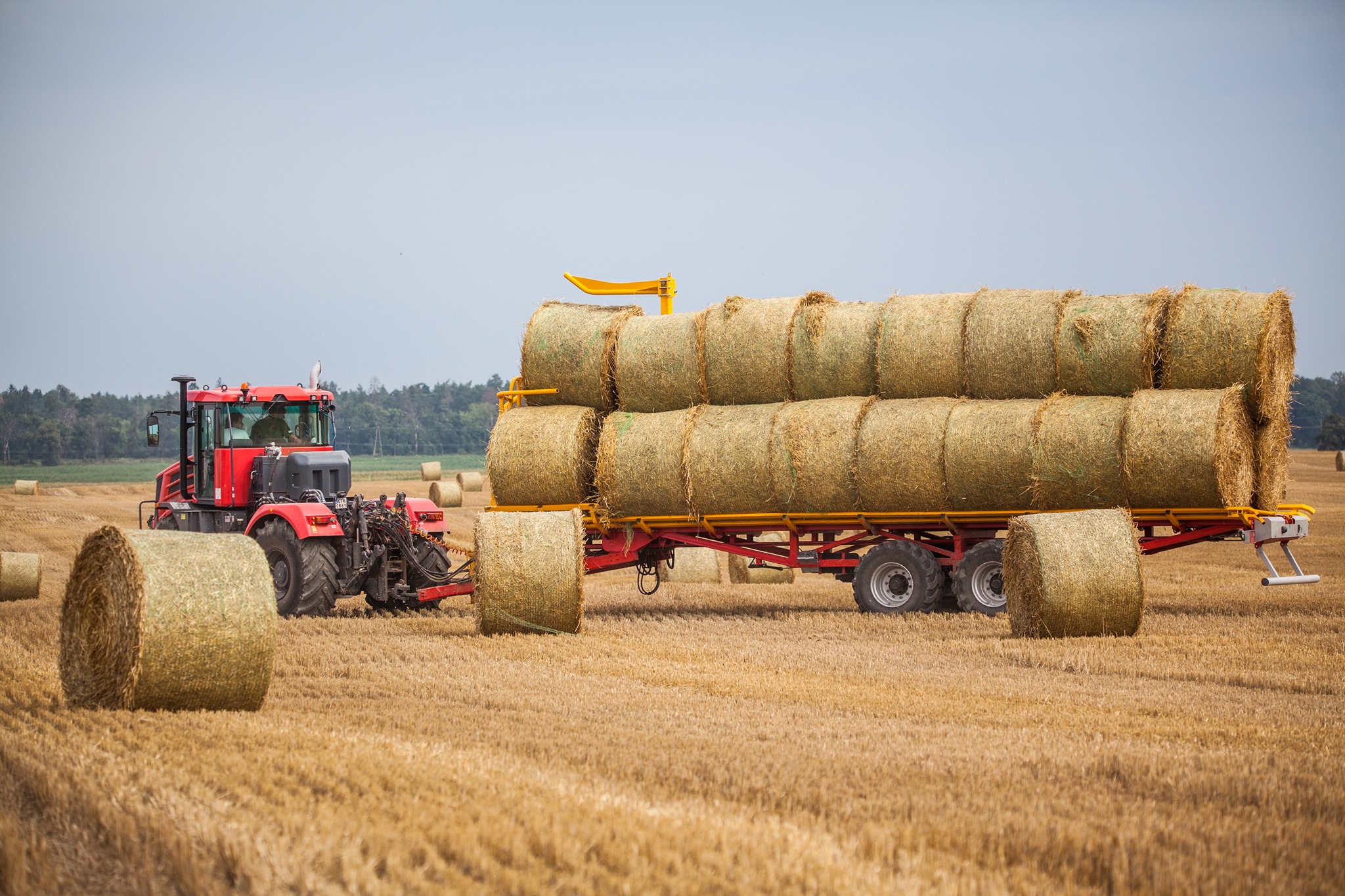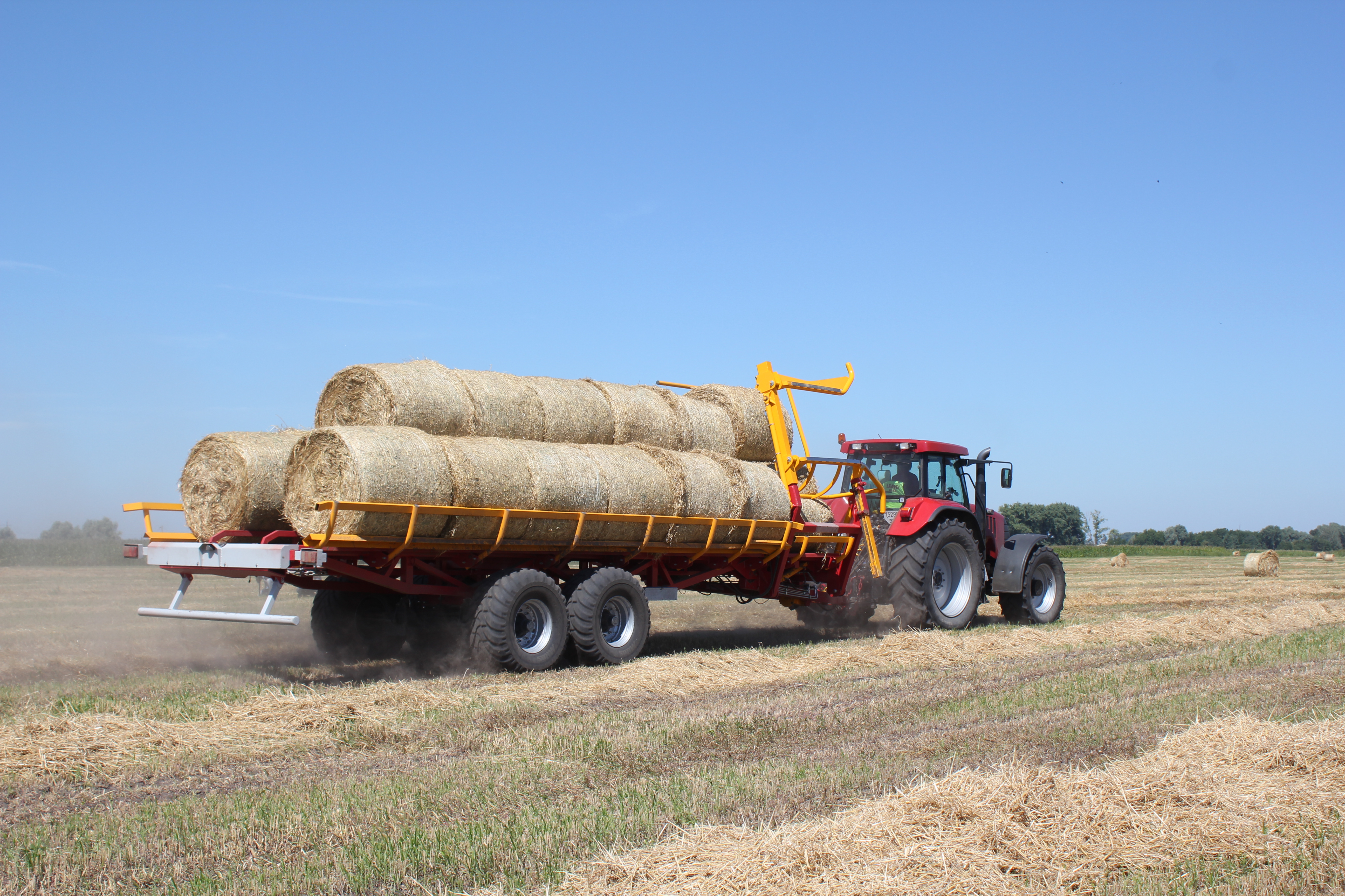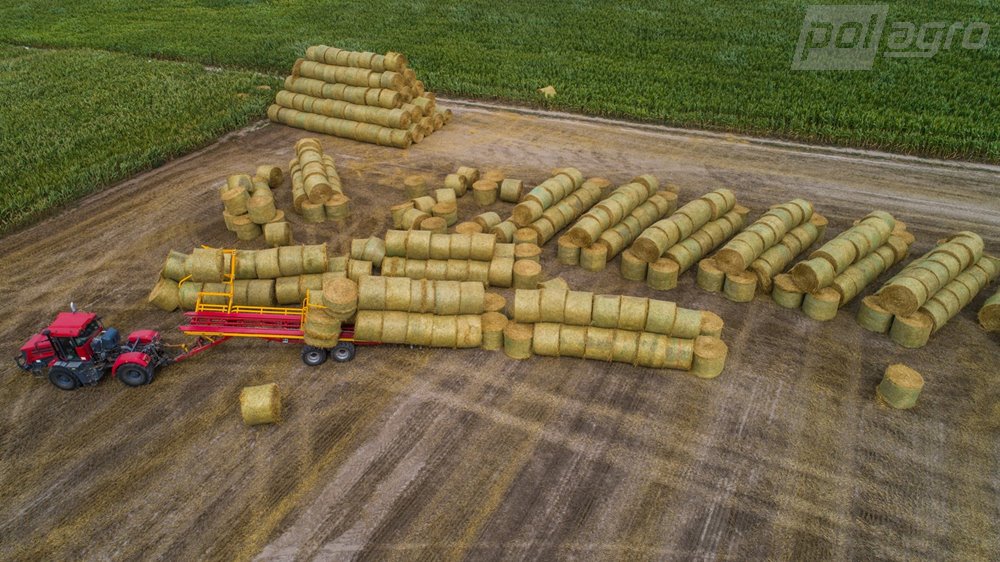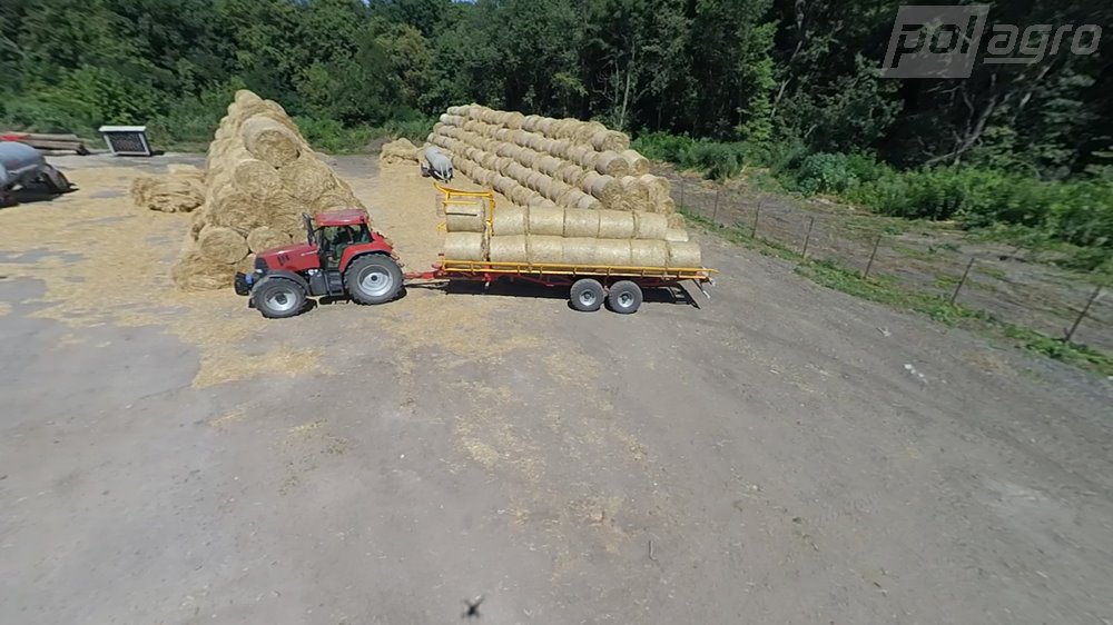 - Hlavní předností přívěsu PT-24 je technologie umožňující kontinuální nakládání balíků přímo na poli bez nutnosti zastavování. Díky teleskopickému rameni lze nakládat balíky až do třetí řady, což výrazně šetří počet jízd mezi polem a farmou – přívěs je schopen přepravit až 24 balíků během jedné jízdy