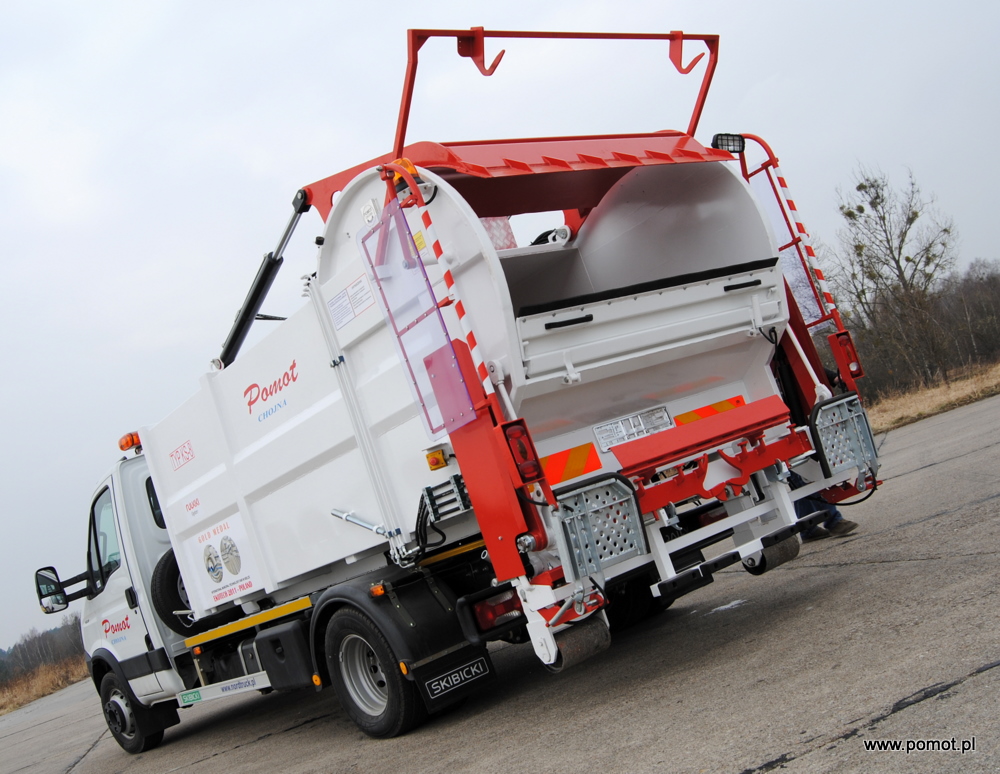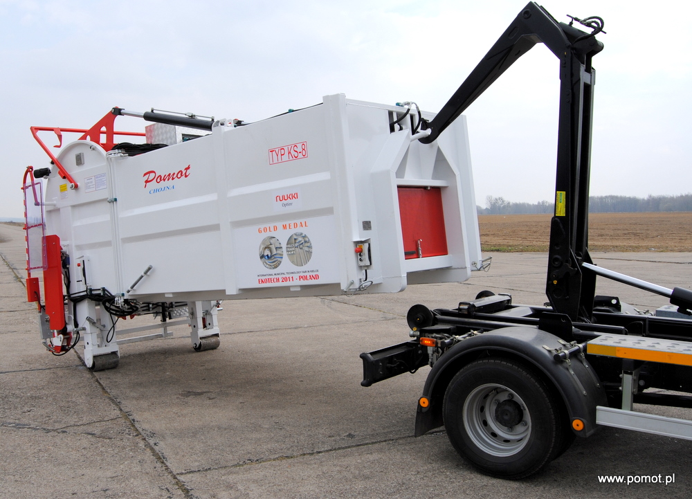 Kontejner na odpadky se díky svým malým rozměrům a použití nové technologie výroby skvěle hodí jak pro sběr komunálního odpadu v úzkých ulicích a těžko dostupných místech velkých měst, tak i v malých a středních městech s hustou zástavbou. Kontejner je umístěný na hákovém nosiči.