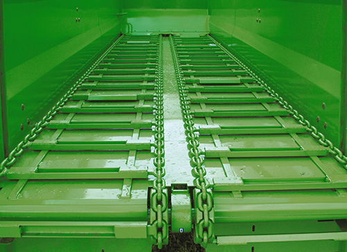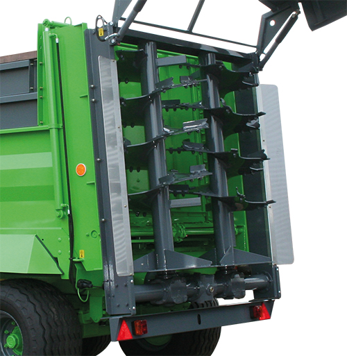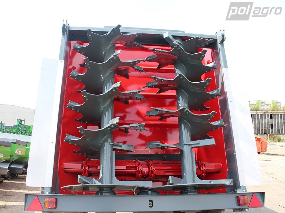 2 nápravové rozmetadlo, 2 páry podlahových řetězových dopravníků, které jsou poháněné hydraulicky. Rozmetací ústrojíá poháněné kardanem.