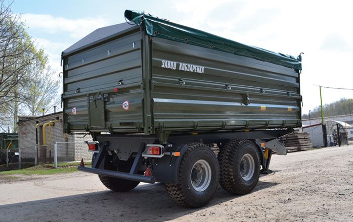 Univerzální tandemové návěsy Kobzarenko o nosnosti od 8 tun do 21,7 tuny jsou vybaveny dozadu sklopnou vanovou korbou s hydraulicky otevítatelným zadním čelem a tandemovou nápravou. Stěny nákladového prostoru zaručují, že přepravované zemědělské plodiny nebudou při transportu poškozeny. Robustní kostrukce zajišťuje odolnost a spolehlivost. Návěsy jsou vybaveny nápravami ADR a hydraulickou soustavou DINATALE. Skořepinová korba, zadní čelo otevírané hydraulicky od podlahy. Hydraulická odstavná noha, mechanická parkovací brzda, dvouokruhová brzdová soustava, možnost agregace horního či spodního závěsu Scharmüller.