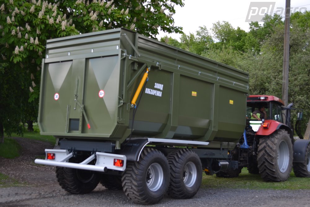 Univerzální tandemové návěsy Kobzarenko o nosnosti od 8 tun do 21,7 tuny jsou vybaveny dozadu sklopnou vanovou korbou s hydraulicky otevítatelným zadním čelem a tandemovou nápravou. Stěny nákladového prostoru zaručují, že přepravované zemědělské plodiny nebudou při transportu poškozeny. Robustní kostrukce zajišťuje odolnost a spolehlivost. Návěsy jsou vybaveny nápravami ADR a hydraulickou soustavou DINATALE. Skořepinová korba, zadní čelo otevírané hydraulicky od podlahy. Hydraulická odstavná noha, mechanická parkovací brzda, dvouokruhová brzdová soustava, možnost agregace horního či spodního závěsu Scharmüller.