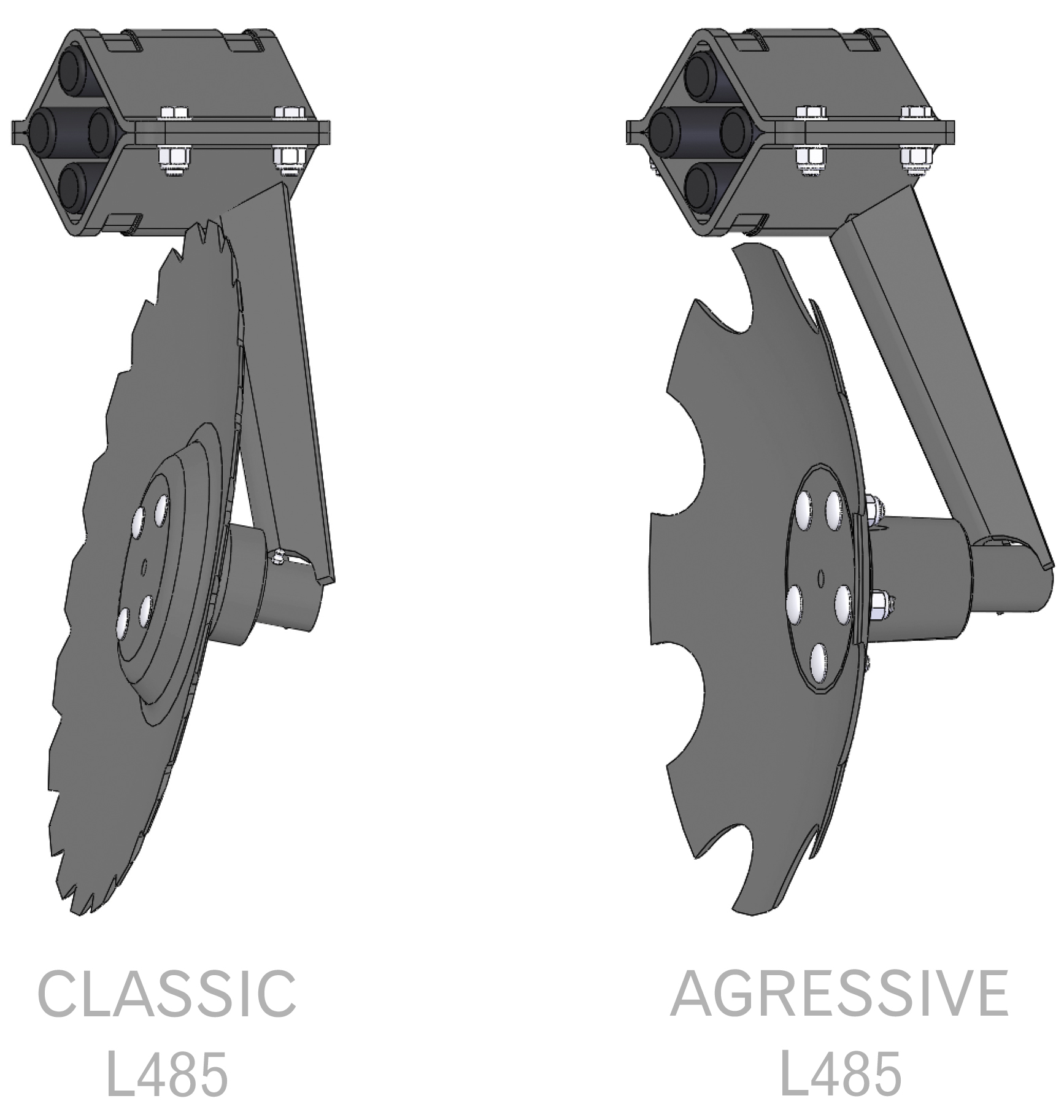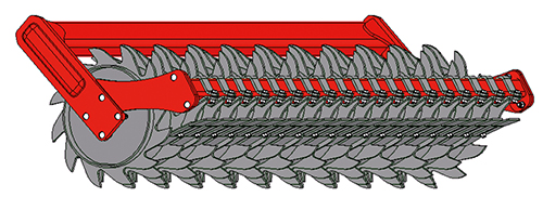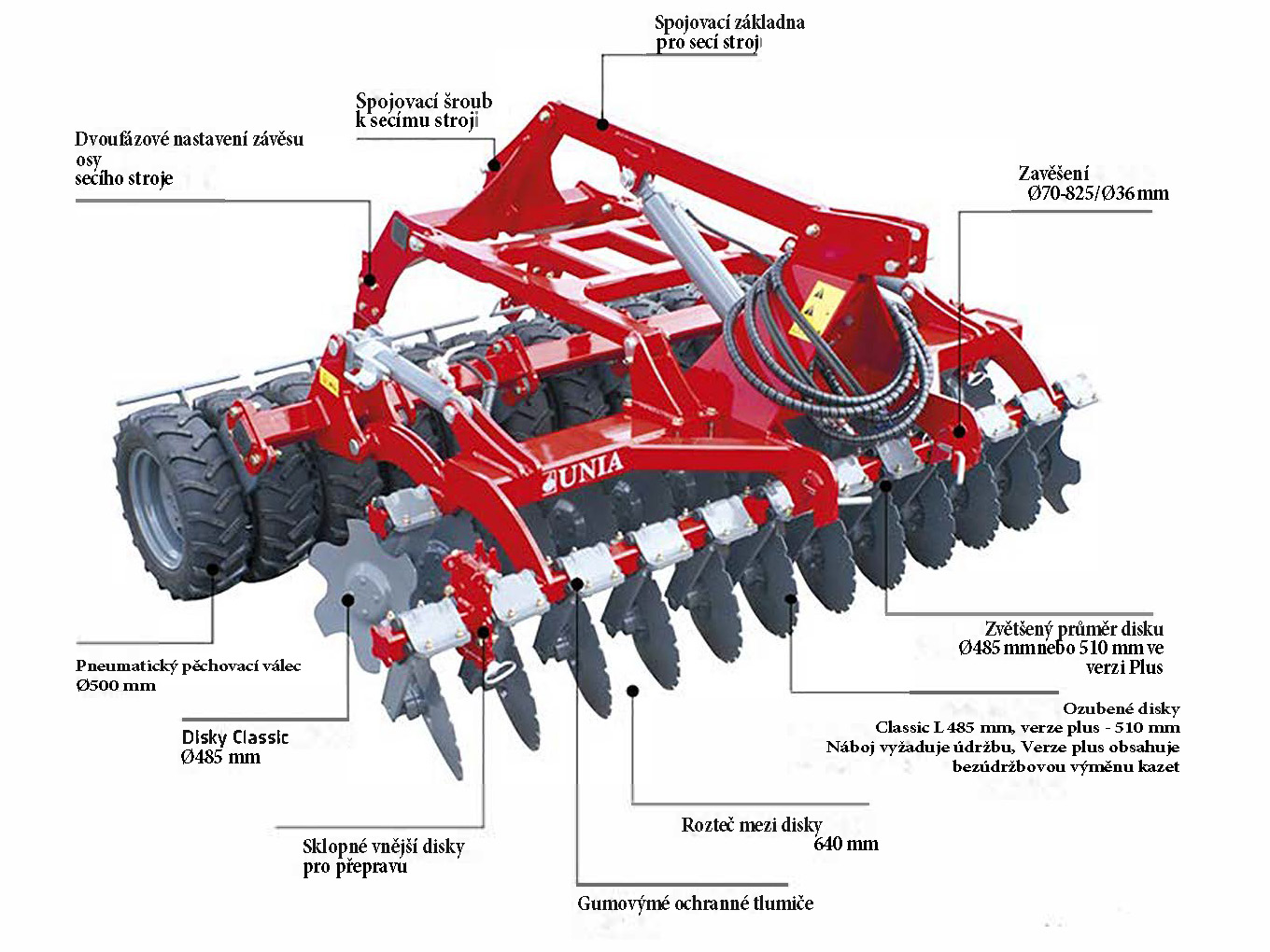 - Dvěmi řadami disků CLASSIC Ø 485/4 mm jištěných gumovými amortizátory Ø35x160 mm,
