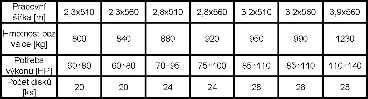 Technická specifikace: Diskový podmítač CUT L Ø560